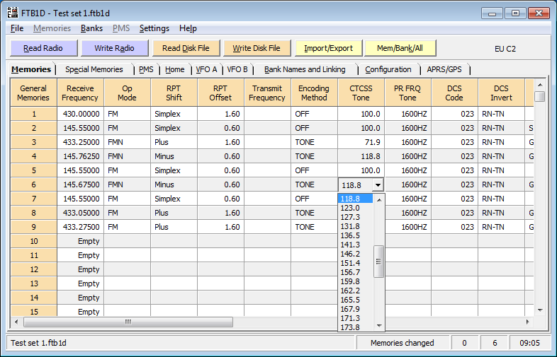 The Import/Export facility enables you to exchange memory information between the following radios by using .CSV format memory definition files. You will also need to use the appropriate FTBxxx software for the target radio.